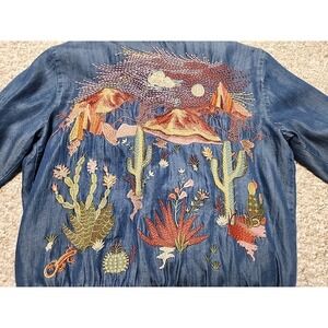 Johnny Was Western Bomber Jacket Denim Embroidered Full Zip Medium Rare