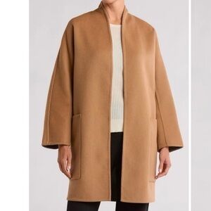 Vince Reversible Collarless Wool Blend Coat in Dark Camel/ Med H Grey Size M