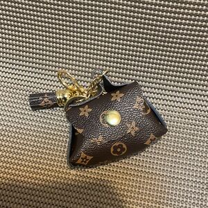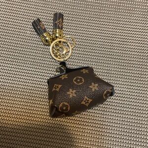 Elegant brown keychain pouch with gold accents. Perfect for adding a touch of luxury to your accessories.