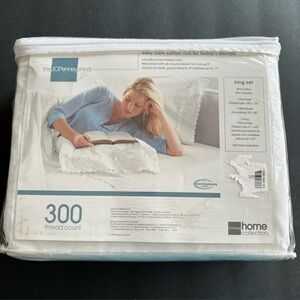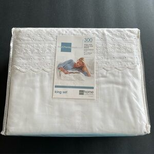 The JCPenney Sheet Set King White Embroidered Lace Hem Cotton Blend 4 Piece Set