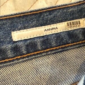 Stylish denim jeans with a classic relaxed fit. Mid rise, Annina style, size 27. Purchased last year. Great used condition. Measurements in photos. Small stain on the inside of one pocket. Probably from a lip gloss. Not visible at all on the outside. Picture to show.