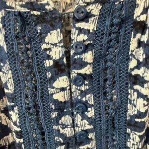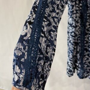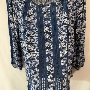 Lucky Brand Women Blue Printed Crochet Detail Peasant Top Blue White Size Small