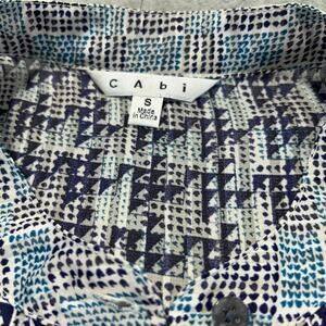 Cabi Astor Geometric Print Blue Blouse Cap Sleeve 735 Women's Small Lighweight