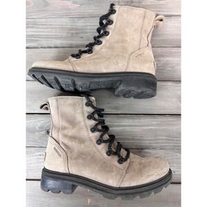 Sorel Lennox Lace Waterproof Tan Leather Booties Combat Size 8 Gorpcore Hiking