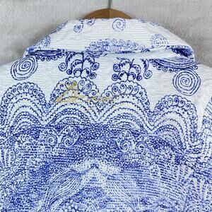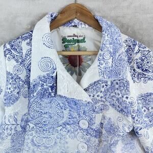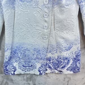 Desigual Ariel Blue White Textured Jacquard Coat Jacket Size 44 L Paisley Arty