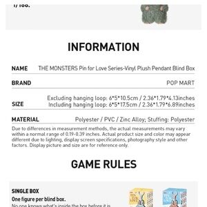 Pop Mart Monsters Plush Pendant, Authentic POPMART Pin for Love Labubu, G