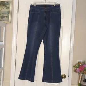 G.I.L.I Flared Jeans - Women's Size 12 Slit Back Front Seam Medium Wash