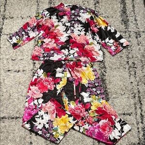 Chic floral pajamas , with vibrant colors. Features a stylish design for any occasion. Comfortable and elegant. GOOD CONDITIONS!!