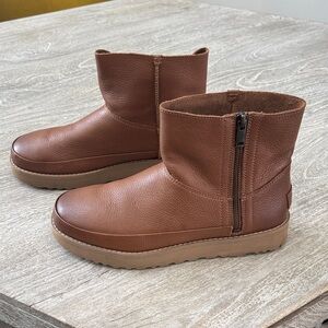 Stylish brown leather booties. Easy side zipper. Perfect for casual wear.