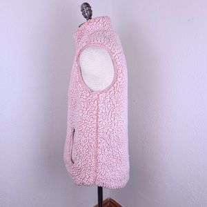 Thread & Supply Pink Zip Up Teddy Vest. Sleeveless. Zippered pockets. Light pink color. Size small. 100% polyester. Gray interior on the collar. Good pre-owned condition.