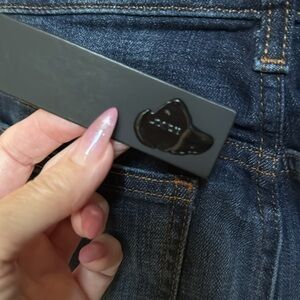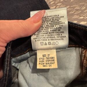 New with tags, no damage to the jeans but the inner brand tag hangs loose on one side