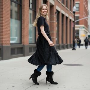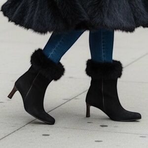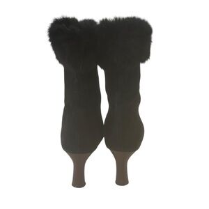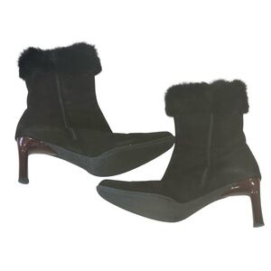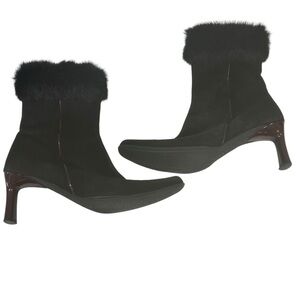 Vintage black suede booties Italy women’s size 40 USA 9B fur trim bohochic zips