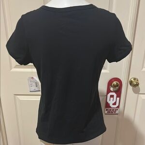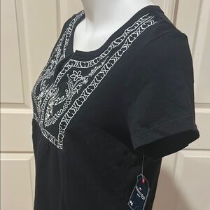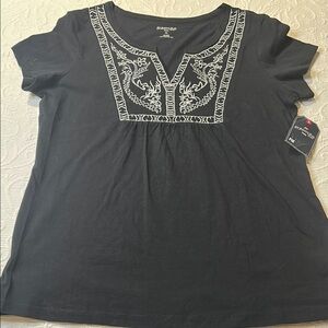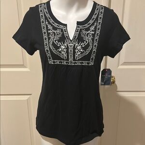 St. John's Bay Black Blouse with White Embroidery Top. NWT. PM