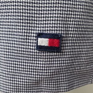 Small Tommy Hilfiger flag logo near hem
