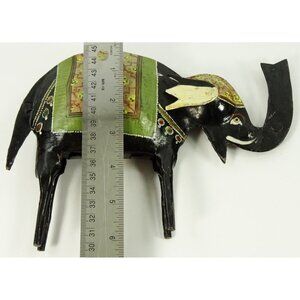 Good Luck Trunk Up Elephant Metal Black Sculpture Folk Art Style Hand Painted