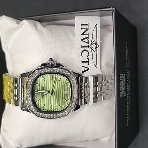 This beautiful Invicta Wildflower watch contains a precise Quartz movement in addition to a steel case. Its face displays a green, copper dial protected by a highly resistant Flame Fusion Crystal. This timepiece is completed by a steel, band and it offers water resistance of up to 30 m.