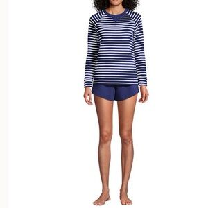 LANDSEND Women's Plus Waffle Pajama Set Long Sleeve T-Shirt and Shorts Cotton