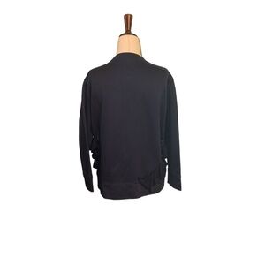 Fun take on a crewneck sweatshirt. Ruffle detail on the front and part of the back. 20.5 pit to pit, 23.5 length.