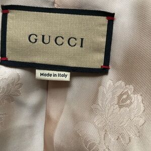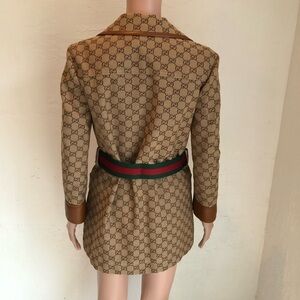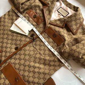 Elevate your style with this Gucci tan monogram jacket. Perfect for any occasion, this jacket combines luxury and comfort.