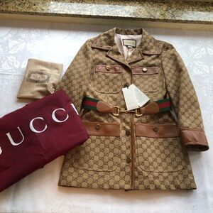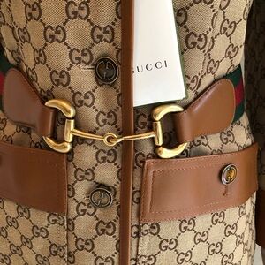 Gucci ARIA Canvas Web Belt Ebony/Tan GG Monogram Jacket Women’s Size 40(M)