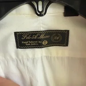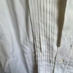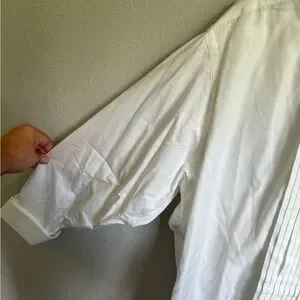 "Mens 16-33 Filo A Mana (Hand Tailored by Tom James) Pleated Long Sleeve Formal Dress Shirt - 16"" Neck 33"" Length - 100% Cotton - Smoke Free Home - No stains, snags, or discoloration - A1"