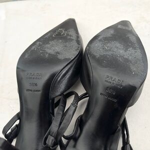 Moderate creasing at vmaps; minor creasing throughout; minor scratches at heel; wear at soles