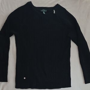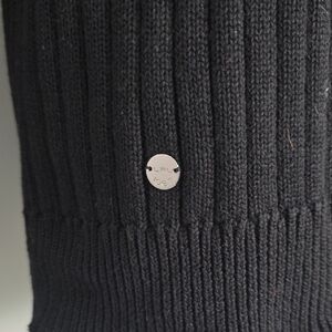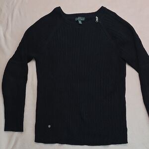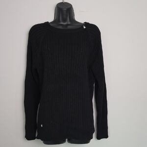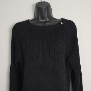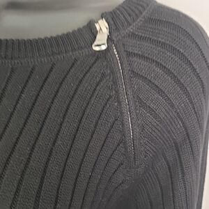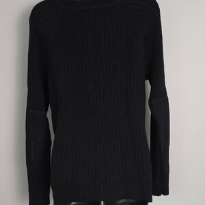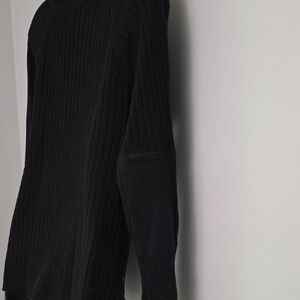 Elegant black sweater with ribbed texture. Ideal for layering.