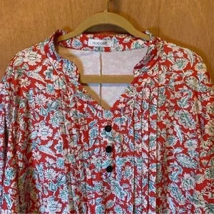 Add a touch of elegance to your wardrobe with this beautiful HOCOSIT Women's Floral Print Short Bell Sleeve Pleated Front V Neck Button Tun. The blouse features a V-neckline and button closure, with a relaxed fit and bell sleeves. The floral pattern in red adds a pop of color to your outfit, while the fake button in the front gives it a unique touch.
