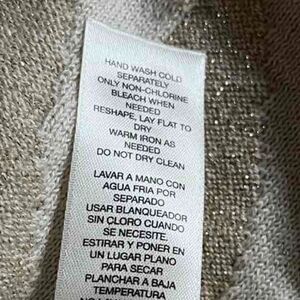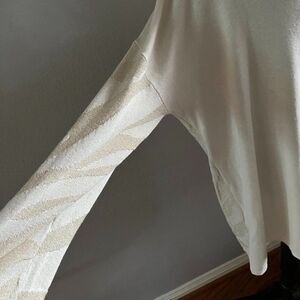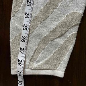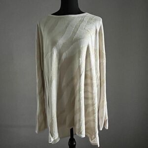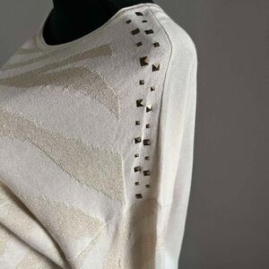 Beautiful shimmer sparkly knit sweater with asymmetrical looking stripes. Cream / Beige / Gold colors