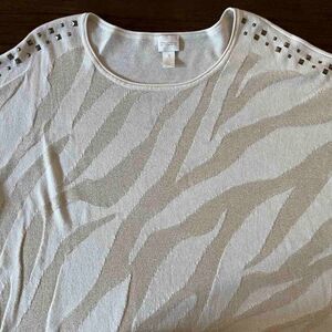 CHICO’S Sweater Chunky knit Sparkly Striped Top long sleeve size 3