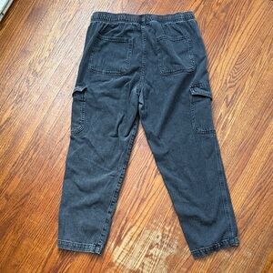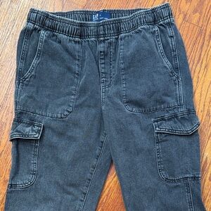 Stylish and versatile black denim cargo pants. Perfect for casual outings and everyday wear. Elastic waist. GAP Small.
