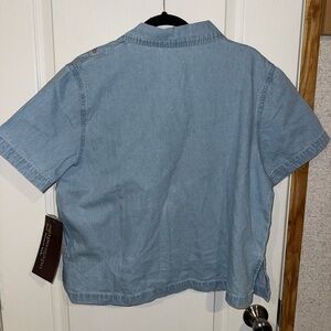 Chic denim top featuring colorful floral embroidery. Perfect for casual outings.size 14. NWT