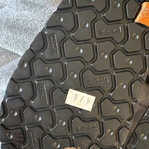 Stylish sandals with orange straps and a brown sole. Perfect for casual wear.