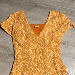 Abercrombie & Fitch Orange Polka Dot Smocked Bodice Mini Dress ST Small Tall