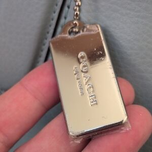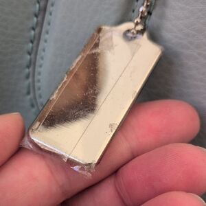 Light Aqua Blue Derby Pebble Leather Tote Bag Purse with Silver Tag by Coach