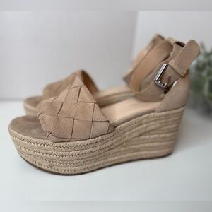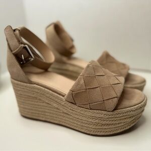 Marc Fisher Women’s Beige/Tan Leather & Suede, Woven Wedge Platform Sandals 8M
