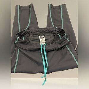 Stylish athletic pants from The North Face. Features teal drawstring and accents. Perfect for workouts or casual wear.