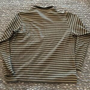Grey and cream striped long-sleeve men’s mesh Polo shirt, size XL,