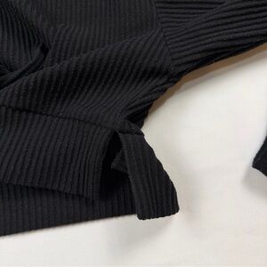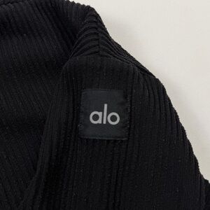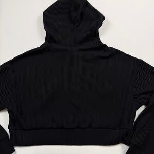 Alo Yoga Muse Ribbed Cropped Black Hoodie Logo Sleeve Small