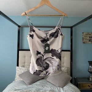 NEW AllSaints Hadley Cowl Neck Satin Top ECRU WHITE Gray Marble Size 4 US 8 UK