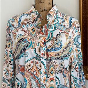 Chicos Paisley Print Women's Top Multicolor Button Down Blouse Long Sleeve 3.5