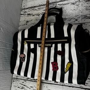 Betsey Johnson Striped Weekender Travel Duffle Bag Black White Floral Interior