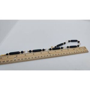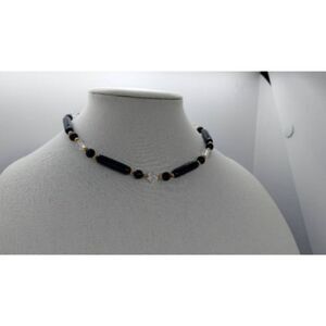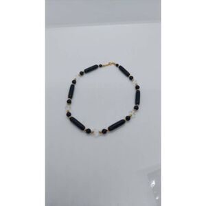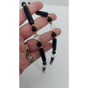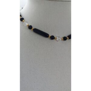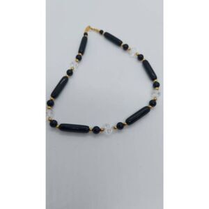 Vintage necklace. Black and crystal look beads accented with gold spacers. Signed Trifari. Shows little signs of wear.