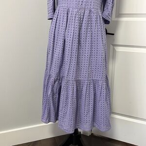 A New Day Round Neckline Elbow Length Sleeves Knee Length Purple Eyelet Dress M