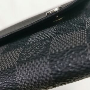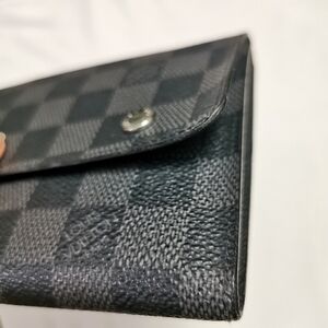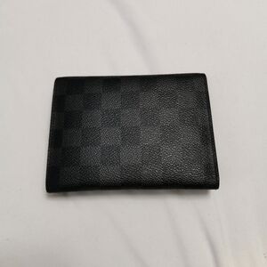 Travel in style with this authentic Louis Vuitton Passport/Document Holder in the masculine Damier Graphite canvas. Crafted in France (2011), this case features a unique double snap-button closure to keep your essential documents secure—a rare feature compared to standard open covers. Perfectly sized to hold a standard passport (can fit up to 4), vehicle registration (carte grise), or other travel documents. The interior features two large slip pockets to tuck your booklet or papers into. • Brand: Louis Vuitton • Material: Damier Graphite Canvas / Cowhide Leather Lining • Date Code: MI2161 (Made in France, 26th Week of 2011) • Origin: Made in France • Dimensions: 5.5" L x 4.25" H (Approx.) • Features: Secure double silver-tone snap closure, dual interior slip flaps. • Condition: Good pre-owned condition. Canvas is vibrant. Edges look clean. Snaps are functional.