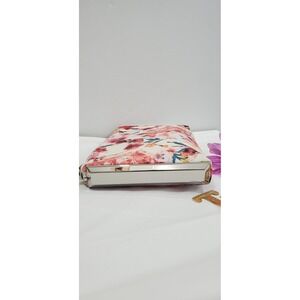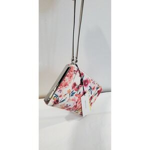 Karen Millen Floral Clutch Wristlet Bag Cream Pink Roses Designer Evening