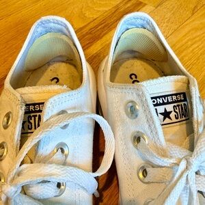 White Converse platform sneakers perfect for daily use for work and play. Comfortable fit which includes removable added cushion in the backing of the heel. I bought another pair of white platforms so never got to enjoy these shoes originally purchased on Poshmark. Hoping to find their next home where they will have adventures. Too cute to sit in the closet. Please see pictures for current used condition.