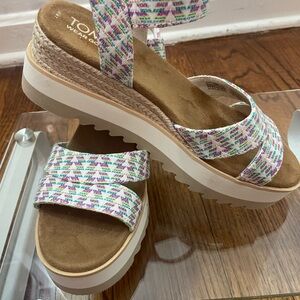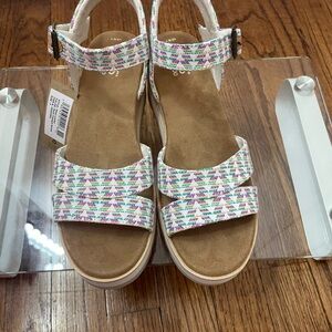 Stylish sandals with vibrant straps. Ideal for summer wear.