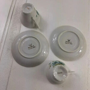 Pamela Japan Saucers and Tea Cups Set Of 2 Blue & White with Flower Design. Pre- Owned in Great Condition. No Chips or Cracks. Please See Pictures To See exact Cups and Saucers. Please Reach Out With Any Questions! Have a Fabulous Day!