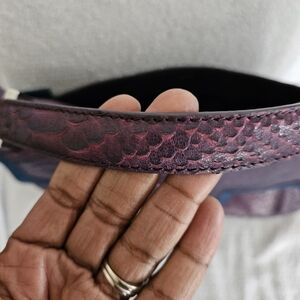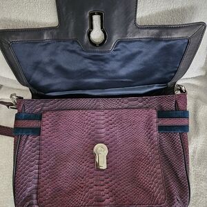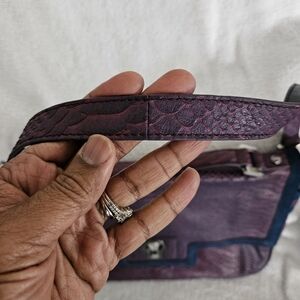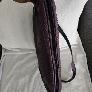 This elegant purple shoulder bag looks brand new and unused. Its stylish design and rich color make it a must-have accessory. The shoulder strap is removable. This is a hard to find bag and may be vintage.